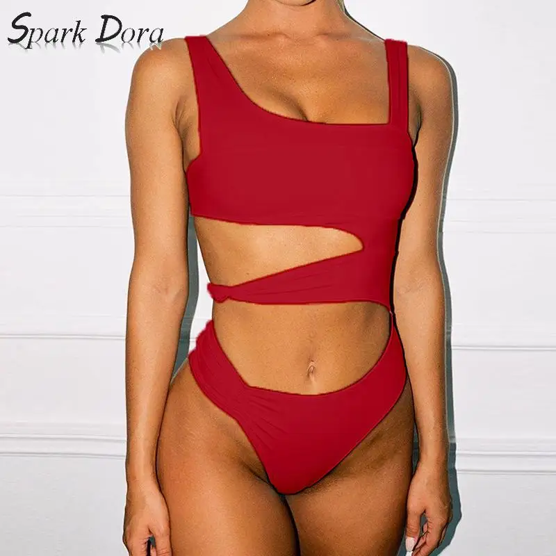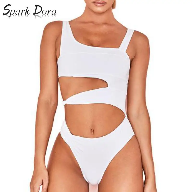 SparkDora 2020 Solid Irregular Cutout One Piece Sexy Bikini Swimsuit Swimwear women Brazilian bikini set 2020 Fashion bathers