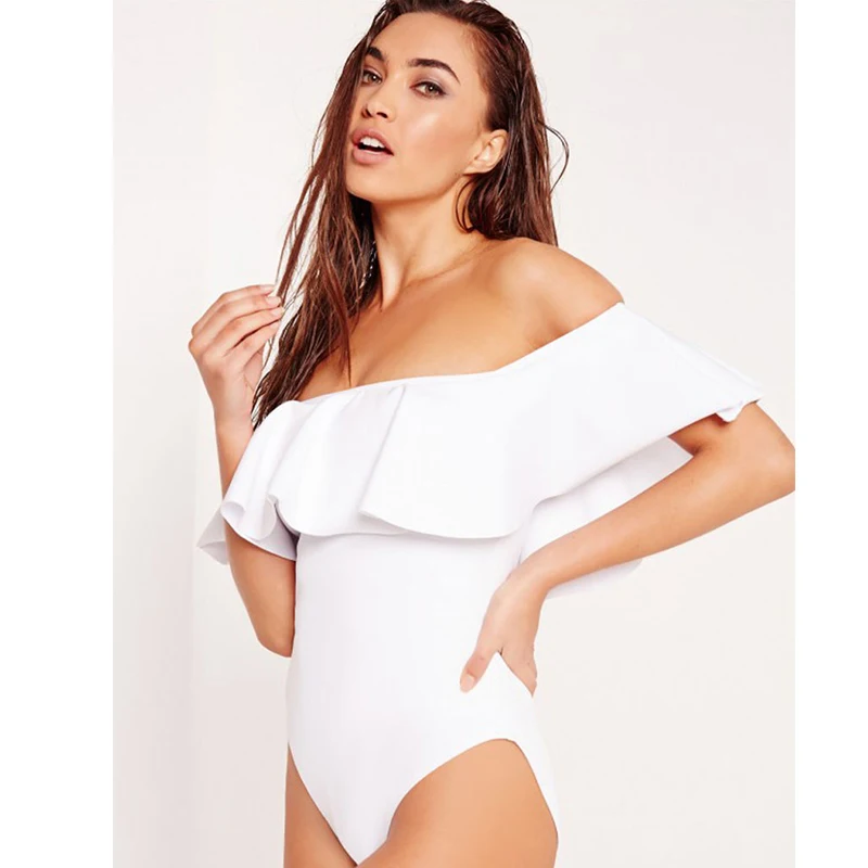 New Sexy Off The Shoulder high-waist Swimwear Bodysuit Monokini Swim Wear Women One Piece Swimsuit Bathing Suit Ruffle